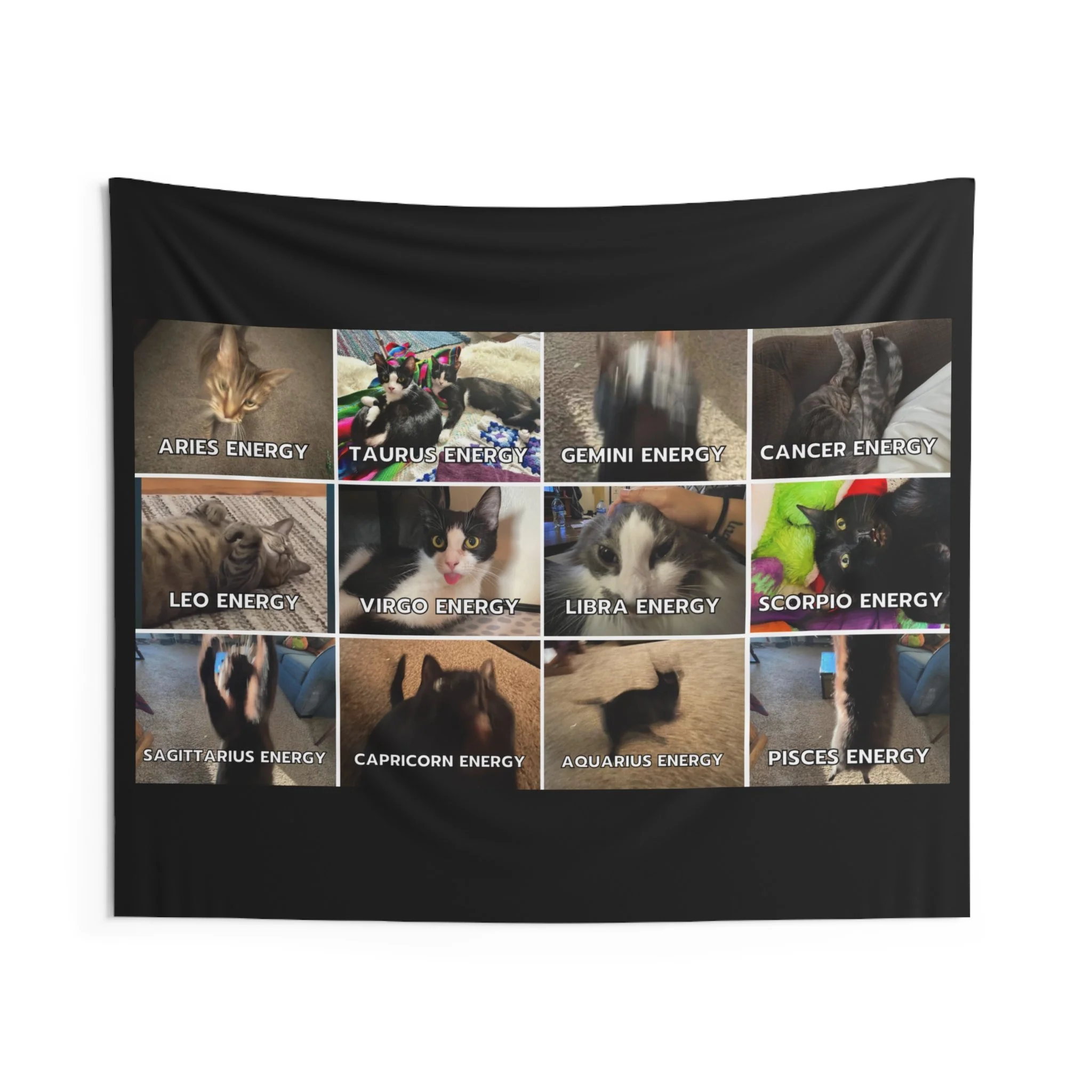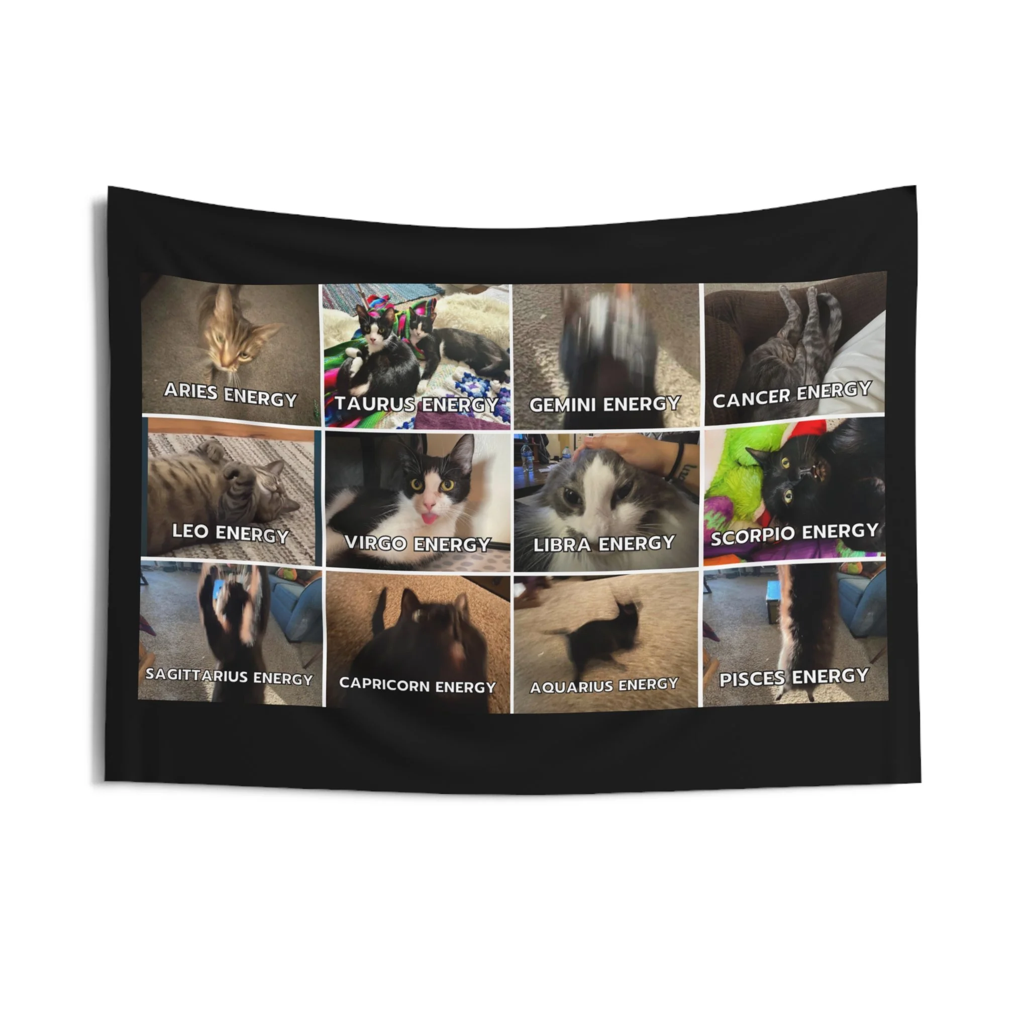 Uplift your room’s aesthetics with a personal touch. This wall tapestry comes with Lee's original meme, cats as Zodiac signs.
